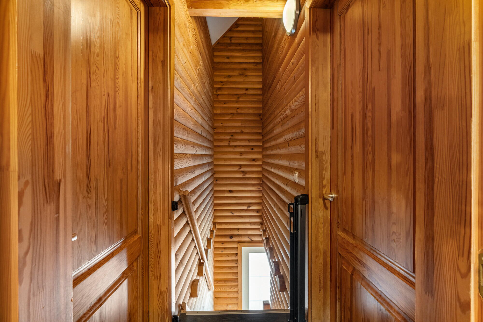 - Houten trap voorzien met veiligheidshekje (voor kinderen);