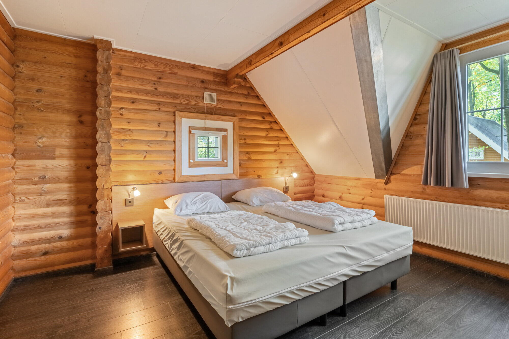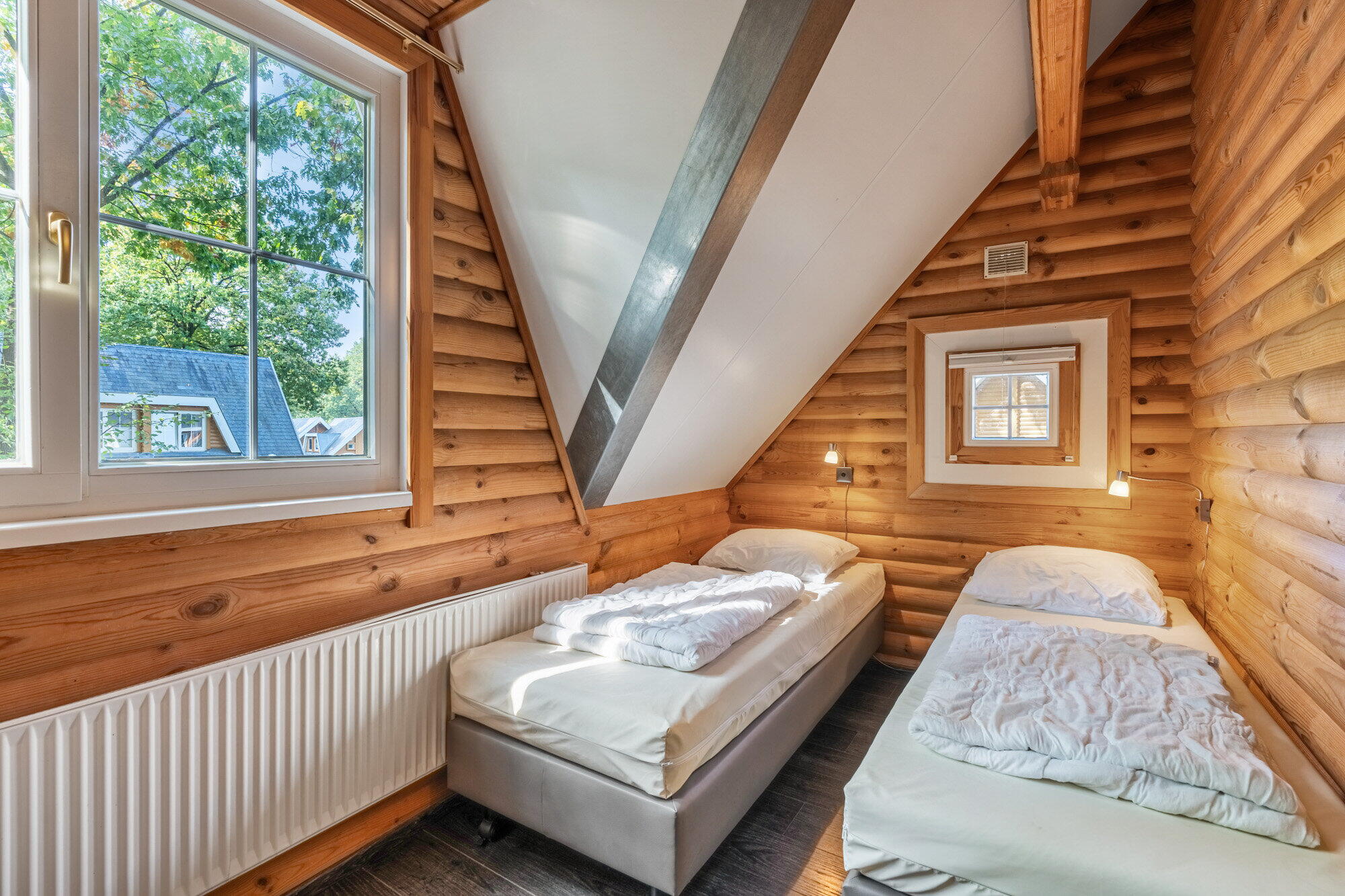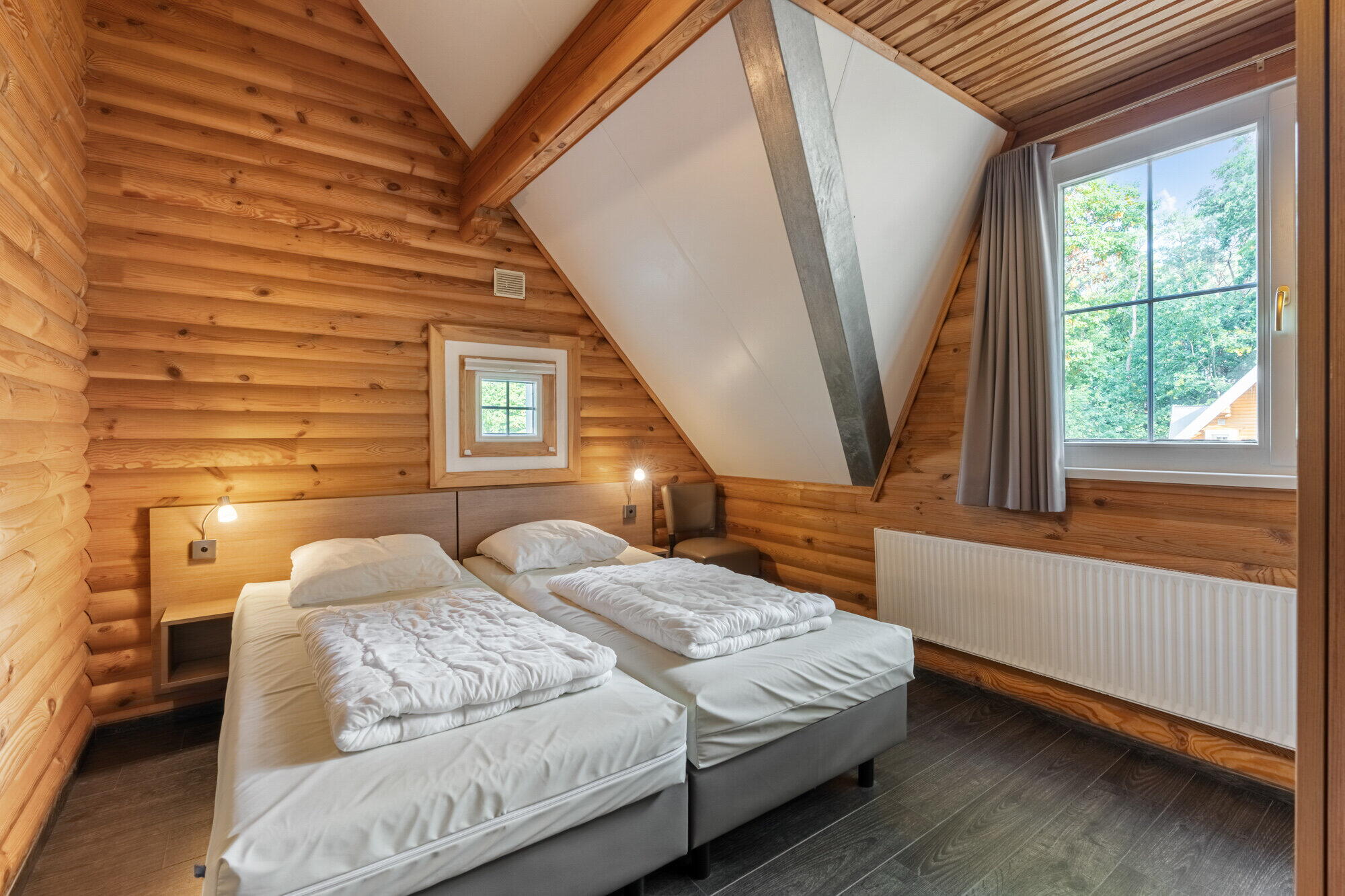 - Slaapkamer 1 en 2 beschikken beiden over 2 x een 1 persoon bed, laminaatvloer, kast, radiator en een raam met draai-kiep functie;